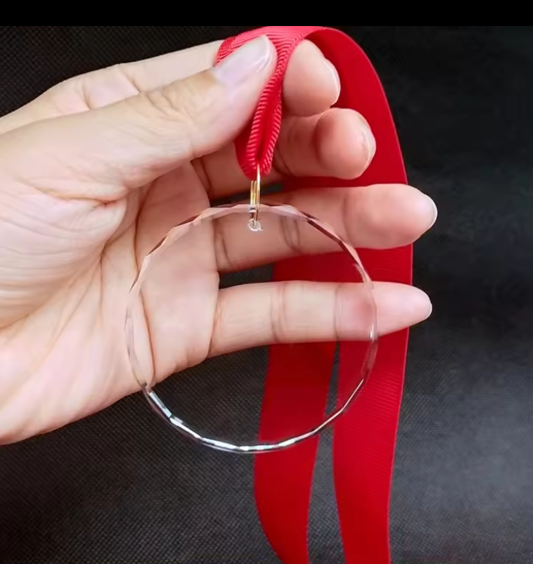 Crystal glass ornament with a hanging ribbon and white gift box perfect for vinyl or UV-DTF