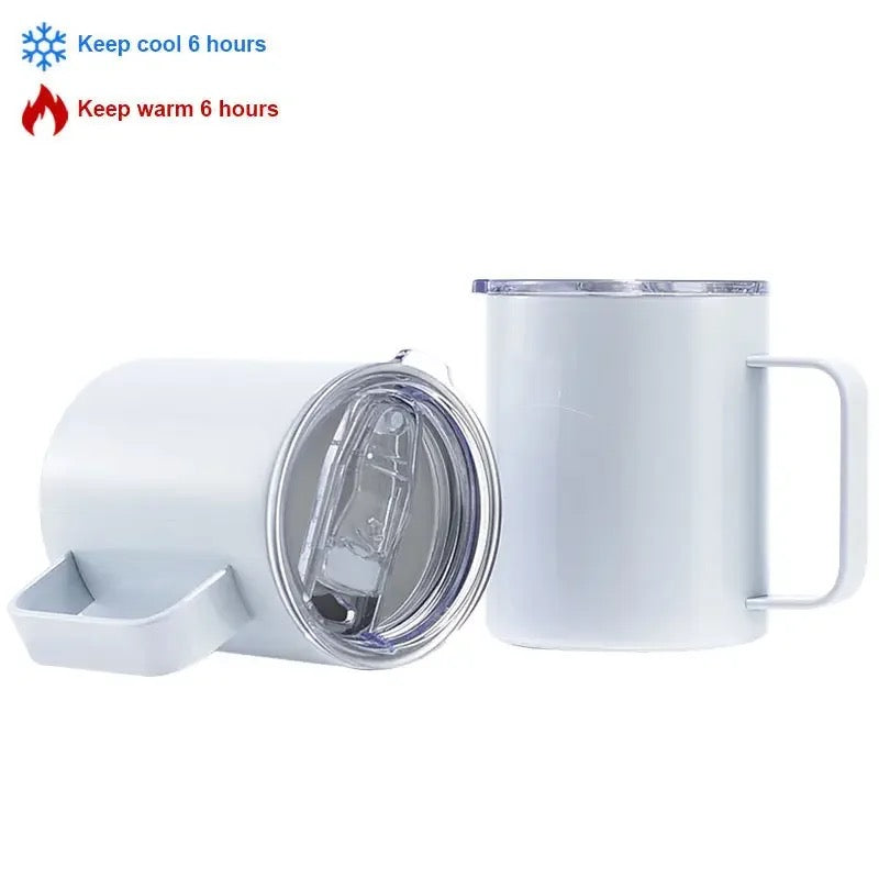 Super versatile stainless steel mugs, double walled to keep your drink hot or cold for 6 hours, leakproof lid.