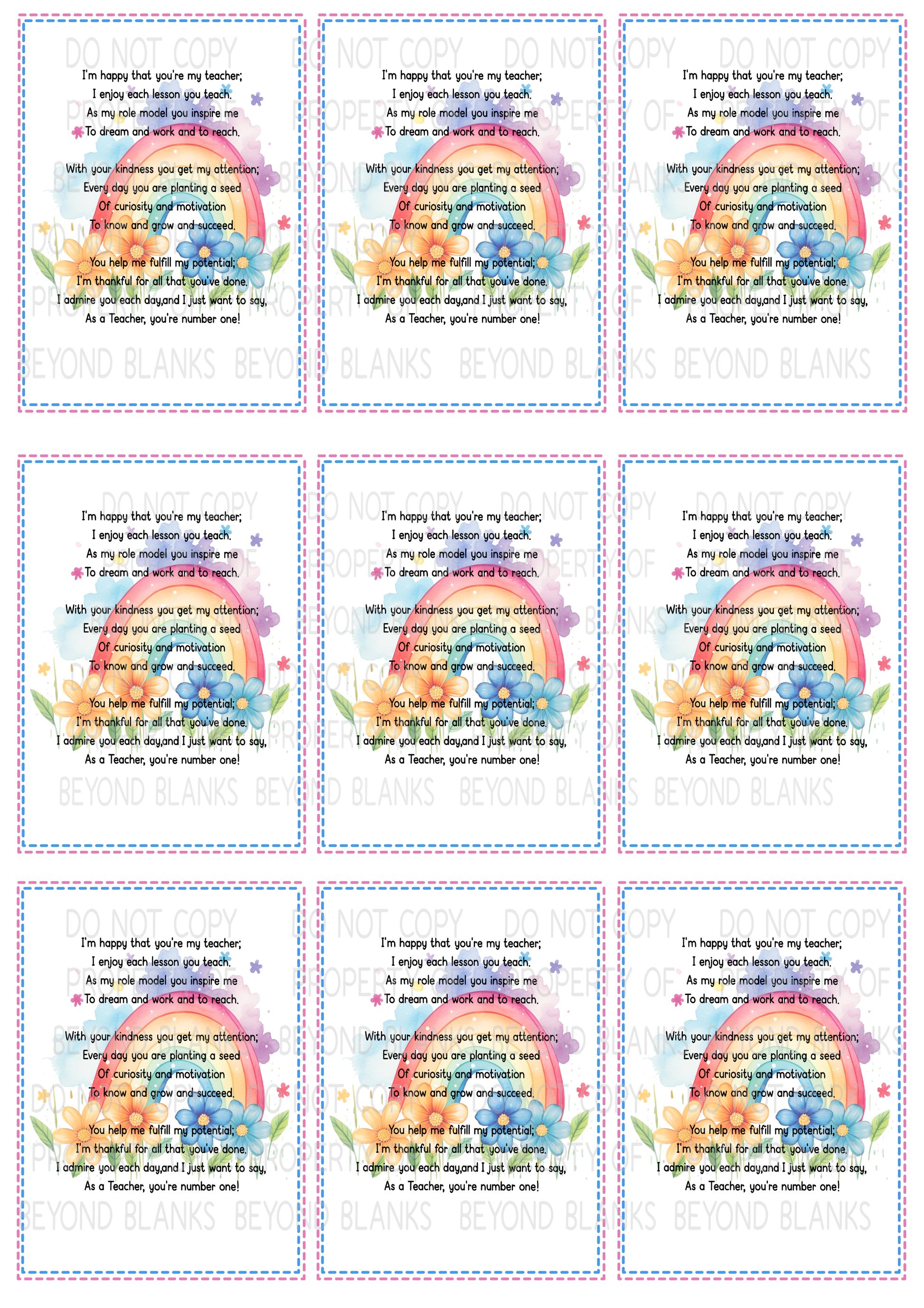 Little cards with verse to give with teachers gifts, great with a plant pot and packet of seeds.
